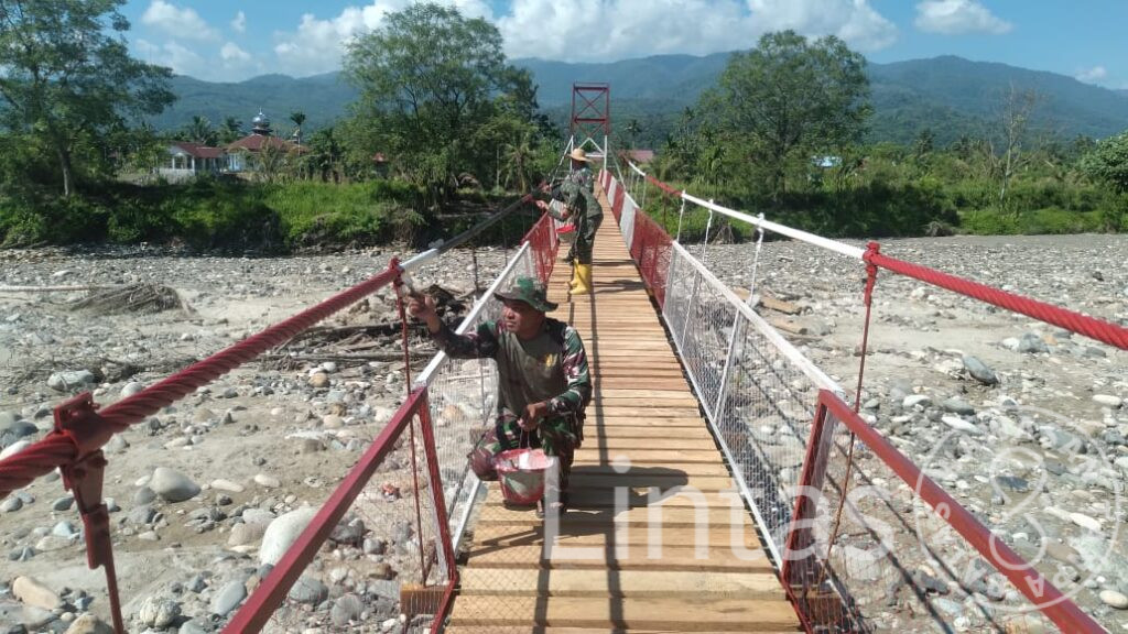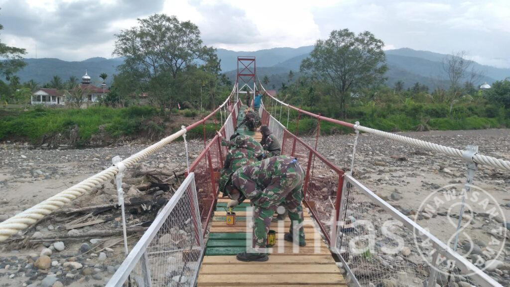 Percepatan pekerjaan dilakukan personel Kodim 0108/Aceh Tenggara guna memastikan jembatan dapat kembali difungsikan secara normal dalam waktu dekat. Infrastruktur sepanjang sekitar 150 meter dan lebar 1,2 meter tersebut membentang di atas aliran sungai dengan kedalaman kurang lebih dua meter, serta selama ini menjadi jalur vital bagi aktivitas ekonomi, pendidikan, dan sosial masyarakat.