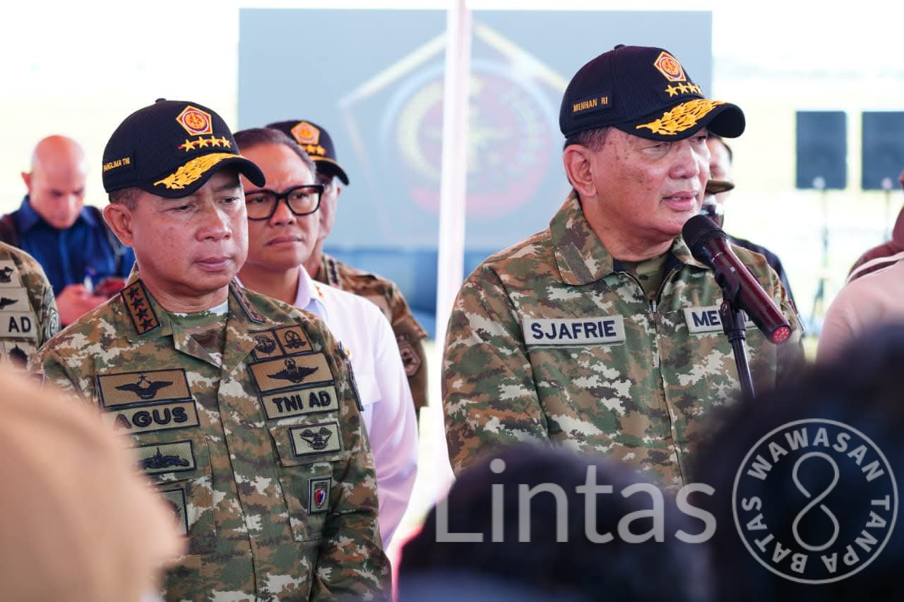 BANGKA, tniad.mil.id — TNI mengerahkan puluhan ribu prajurit dari tiga matra dalam Latihan TNI Terintegrasi Tahun 2025 sebagai demonstrasi kekuatan nasional sekaligus wujud komitmen melindungi aset strategis negara di Bangka Belitung dan Morowali. Menteri Pertahanan RI Sjafrie Sjamsoeddin didampingi Panglima TNI Jenderal TNI Agus Subiyanto, serta sejumlah pejabat negara menyaksikan langsung pelaksanaan latihan dari Titik Tinjau Desa Mabat, Bangka, Rabu (19/11/2025).