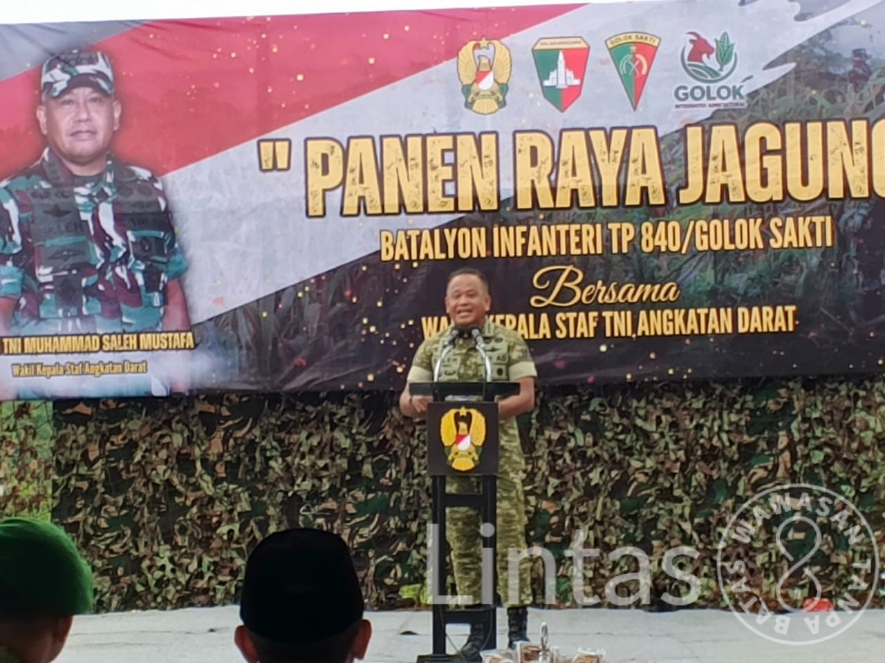Pada kesempatan itu, Wakasad meninjau panen raya jagung Yon TP 840/Golok Sakti yang menjadi panen perdana di jajaran Batalyon Teritorial Pembangunan se-Indonesia. Program ini dinilai sejalan dengan upaya pemerintah dalam memperkuat ketahanan pangan nasional sekaligus meningkatkan kesejahteraan masyarakat sekitar.