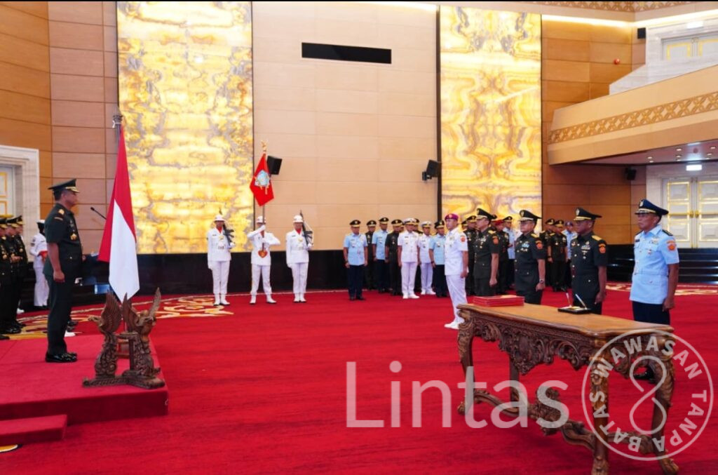 Jakarta – Wakil Panglima TNI Jenderal TNI Tandyo Budi R mewakili Panglima TNI Jenderal TNI Agus Subiyanto memimpin upacara serah terima jabatan (Sertijab) Komandan Pusat Misi Pemeliharaan Perdamaian (Dan PMPP) TNI, Kepala Pusat Penerangan (Kapuspen) TNI, dan Kepala Pusat Jasmani dan Peraturan Militer Dasar (Kapusjaspermildas) TNI. Kegiatan tersebut dilaksanakan di Aula Gatot Subroto, Mabes TNI, Jakarta Timur, Selasa (30/12/2025).